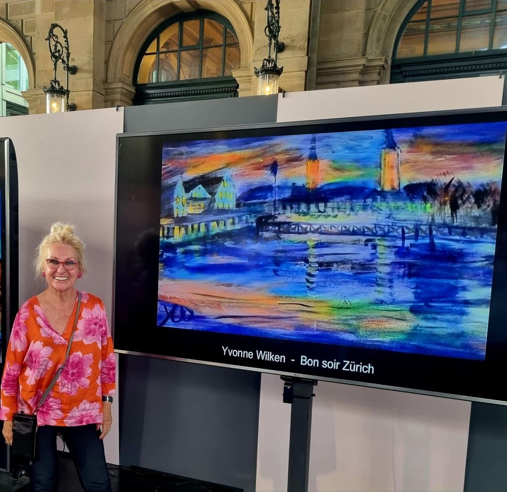 24. August 202524. August 2025 Nachlese der Swiss Art Expo Artparty vom 23.8.25 (sehr passend am Tag der Heiligen Yvonne) im tollen belebten Ambiente des Hb Zürich und meinen beiden Bildern im digitalen Format. Die echten hängen zu Hause (Au revoir Zürich) und im Dortmunder Restaurant Due Fratelli (Bonsoir Zürich) Teilen mit: Klicke, um auf X zu teilen (Wird in neuem Fenster geöffnet) X Klick, um auf Facebook zu teilen (Wird in neuem Fenster geöffnet) Facebook Gefällt mir Wird geladen … Veröffentlicht von yvonnenodaywithoutfinearts Oberstudienrätin für Englisch und Französisch im Ruhestand. Kunstschaffend und -begeistert und reisefreudig Zeige alle Beiträge von yvonnenodaywithoutfinearts