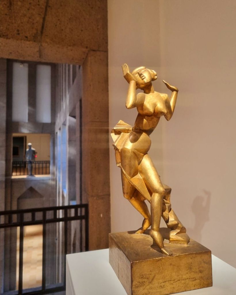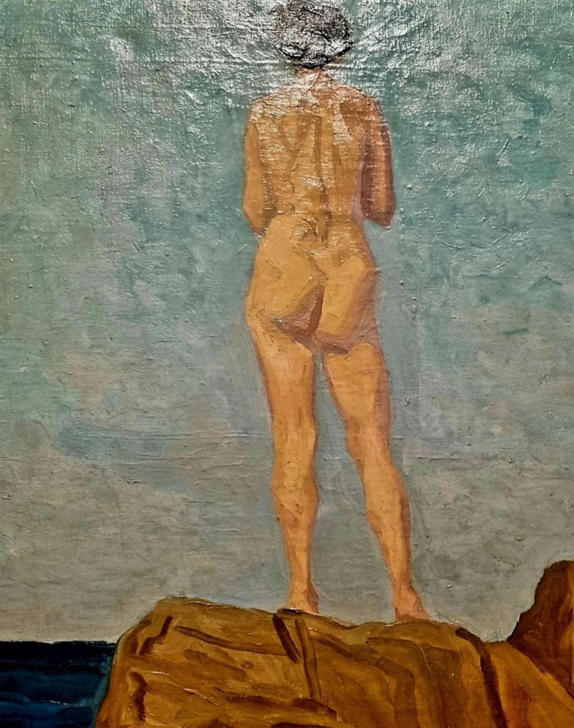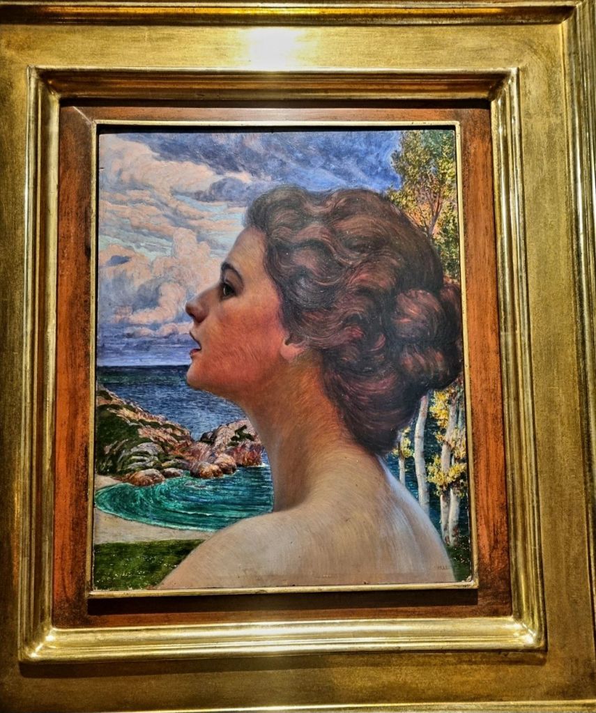 Heute kann man dreier Künstler gedenken, die in einer Zeitepoche lebten und alle 3 am 26.8. in Deutschland geboren wurden. Es sind dies der Jugendstil-Maler HANS UNGER (1872-1936), der Bildhauer RUDOLF BELLING (1886-1972) und der Maler der Neuen Sachlichkeit HERBERT ROLF SCHLEGEL (1889-1972). Ungers zartes und doch farbiges Portrait seiner Verlobten mit dem romantischen Titel „Abendlied“ sah ich im vergangenen März in der großartigen Jugendstilabteilung des Landesmuseum Wiesbaden. Bellings „Tänzerin“ aus vergoldetem Lindenholz im September 2024 im Kunstpalast, Düsseldorf und Schlegels „Stehender Rückenakt auf Bornholm“ aus dem Museum Haus Opherdicke „stand“ im Frühsommer als Leihgabe in der Villa Hügel Essen in der großen 21×21 Ausstellung.