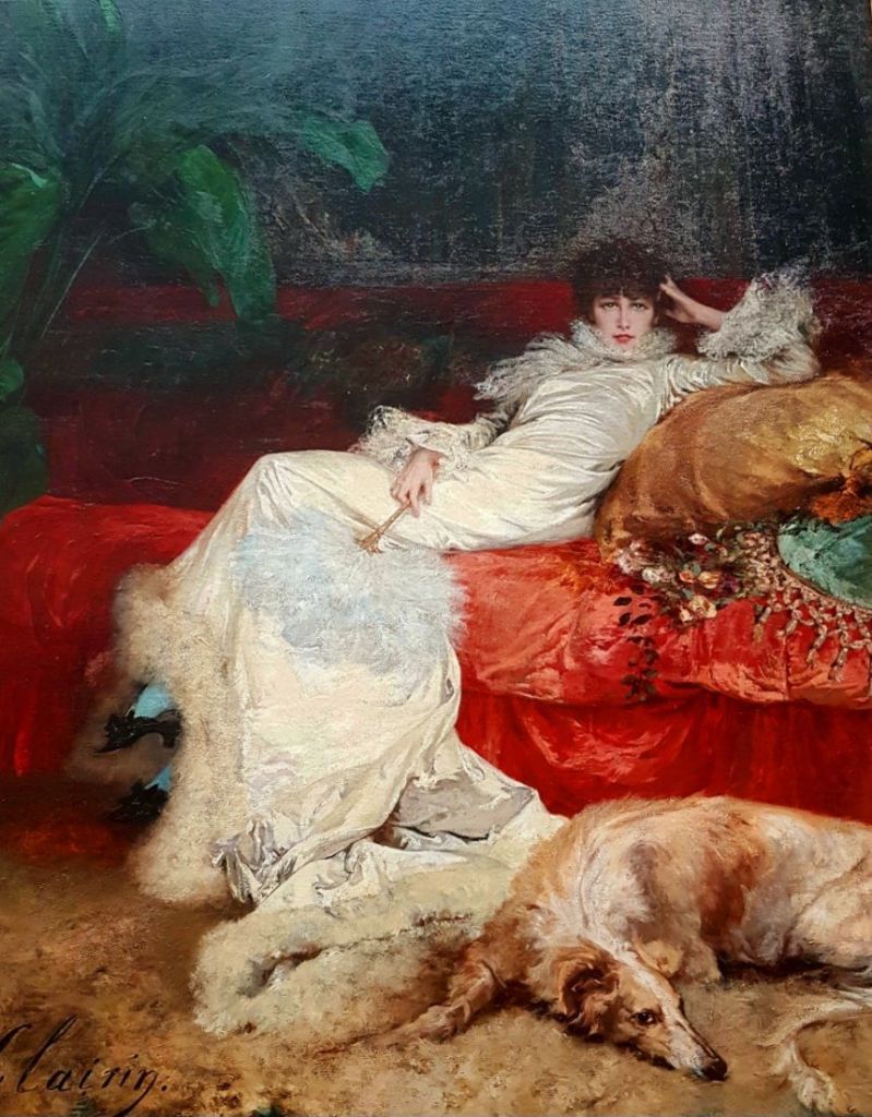 Heute ist ein besonders schöner Kunst-Windhund im Vordergrund, denn sein Schöpfer GEORGES CLAIRIN (1843-1919), ein französischer Portrait- und Historienmaler, hätte heute Geburtstag. Ich habe das Portrait von Sarah Bernhardt, der der Schöne offensichtlich gehört hat, immer schon an der Außenseite des Petit Palais, musée des Beaux-arts de la Ville de Paris bewundert und so manches Mal innen fotografiert (wie hier im Jahr 2018). Bald werde ich selbst in Paris ausstellen und bestimmt in der Zeit das Petit Palais besuchen. Es lohnt sich allemal