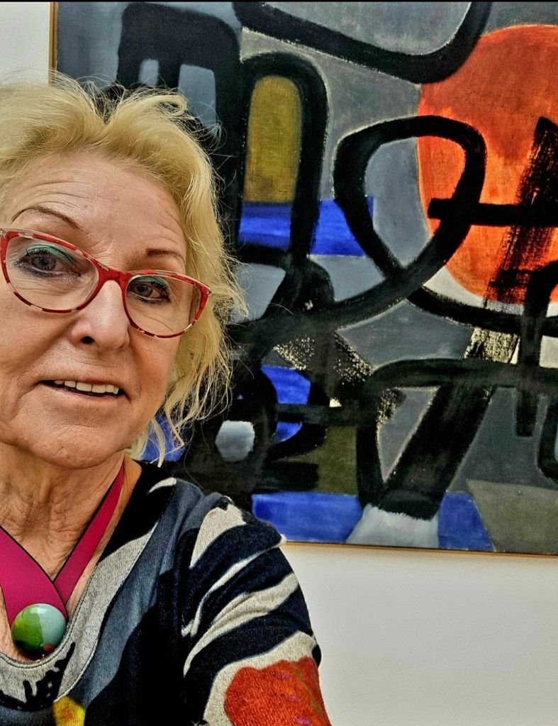 Der Künstler des Tages ist FRITZ WINTER (1905-1976), der berühmte abstrakte Künstler, der vor genau 120 Jahren in der Gegend von Unna geboren wurde. Man findet seine Bilder in vielen Museen Deutschlands, und manchmal passt meine Kleidung zu seinen Werken – wie hier im März dieses Jahres im Landesmuseum Wiesbaden.