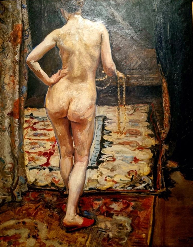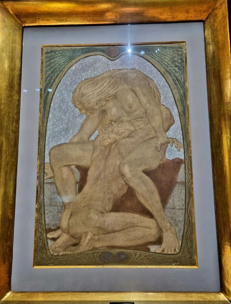 MAX SLEVOGT (1868-1932) hätte heute Geburtstag. Zweimal sah ich Bilder von ihm in diesem Jahr, eines fiel mir 2023 auf. Das älteste davon ist „Der Maler auf Capri“ von 1889, das ich im Januar dieses Jahres im Landesmuseum Hannover sah. Einundzwanzigjährig malte er es aus diesem interessanten Blickwinkel, als wäre es ein Bildausschnitt. Von 1905 ist der bezaubernde, sehr intime „Rückenakt“, gesehen im Kunstpalast, Düsseldorf, und das Bild „Blühender Flieder“ aus dem Jahr 1921 entdeckte ich im März in der Fülle der Werke im Städel Museum in Frankfurt.„Mutter Nacht“ und „Tröstender Schoß“ heißen die beiden Akte vom am gleichen Tag im gleichen Jahr geborenen Künstler FIDUS (1868-1948), der vom Rebell und Lebensreformer später zum Nazi-Mitläufer wurde, und ähnlich wie NOLDE dennoch den Nazis als entartet galt. Seine beiden Bilder entstanden 1911 und wurden in der Jugendstil-Abteilung des Landesmuseum Wiesbaden gezeigt.