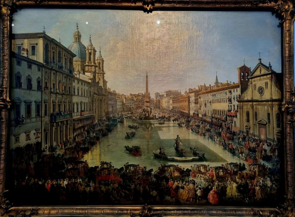 21. Oktober 2025 Artist of the Day: GIOVANNI P. PANNINI Der italienische Vedutenmaler und Architekt GIOVANNI PAOLO PANNINI (1691-1765) starb heute vor 260 Jahren. Sein Bild mit dem eigentümlichen Titel „Die Piazza Navona in Rom – unter Wasser gesetzt“ entdeckte ich im Mai im Landesmuseum Hannover. Teilen mit: Klicke, um auf X zu teilen (Wird in neuem Fenster geöffnet) X Klick, um auf Facebook zu teilen (Wird in neuem Fenster geöffnet) Facebook Gefällt mir Wird geladen … Veröffentlicht von yvonnenodaywithoutfinearts Oberstudienrätin für Englisch und Französisch im Ruhestand. Kunstschaffend und -begeistert und reisefreudig Zeige alle Beiträge von yvonnenodaywithoutfinearts