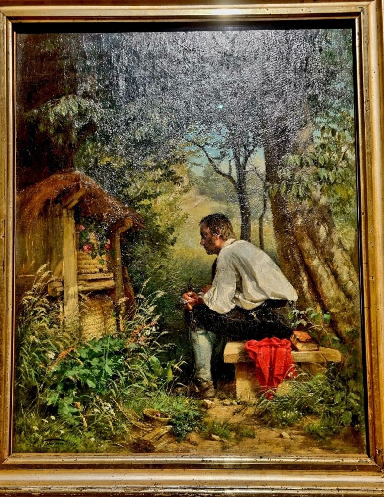 Einen Todestag muss man noch erwähnen: heute vor 101 Jahren starb der in seiner Zeit sehr beliebte Maler und Karlsruher Akademieprofessor HANS THOMA (1839-1924). Seinen „Bienenfreund“ entdeckte ich im März in einer dem Honig und den Bienen gewidmeten Ausstellung im Landesmuseum Wiesbaden.