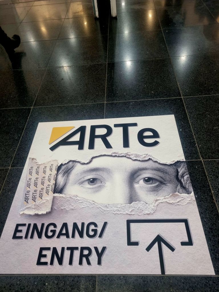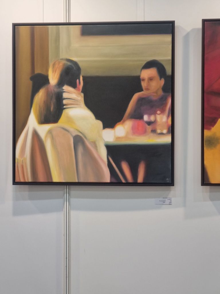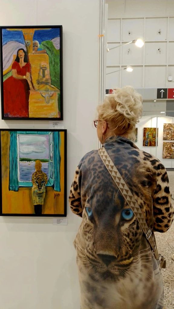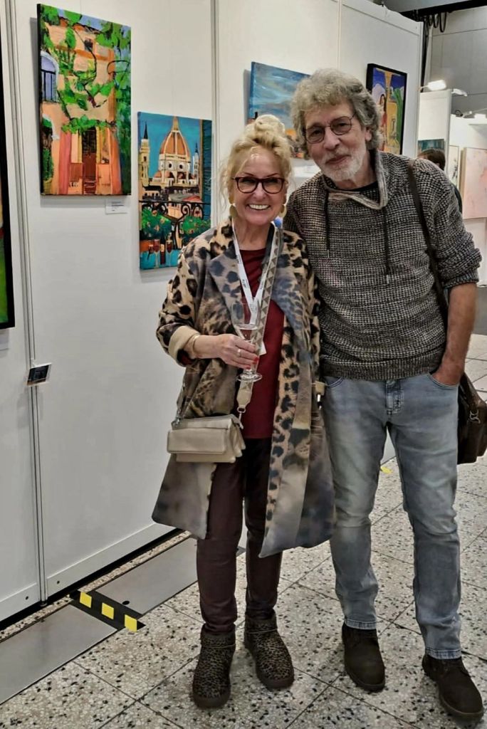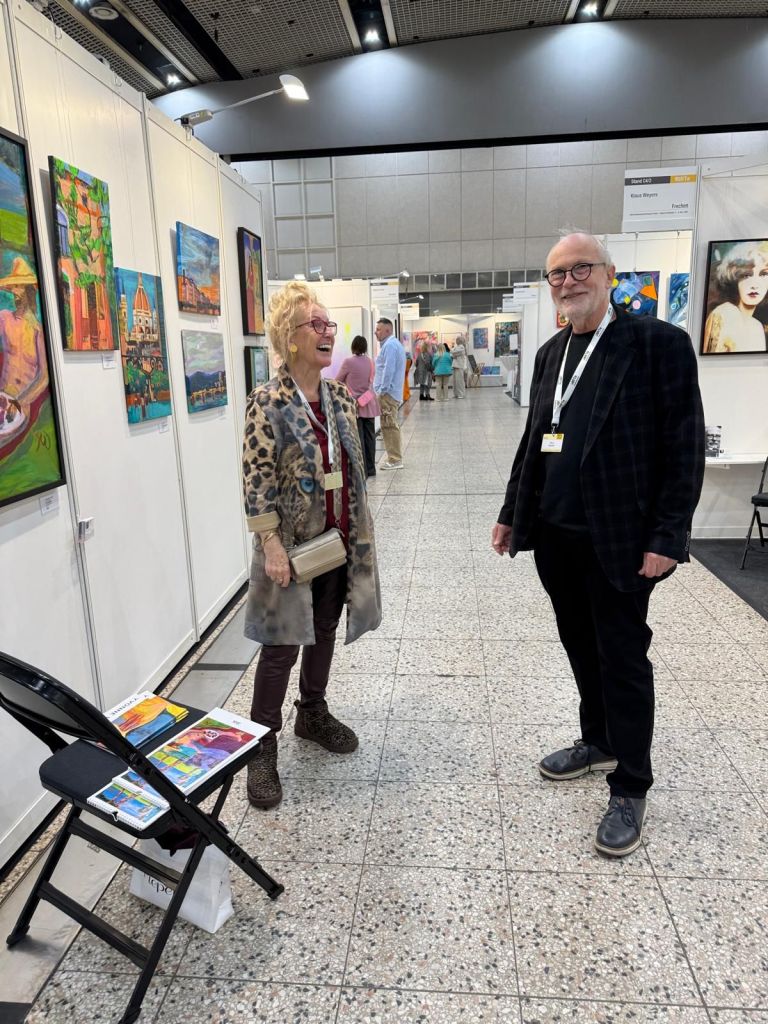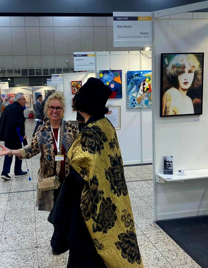 Regina Claussen-Daw aus DelmenhorstHelga Hoicke aus Dortmund und (unten) Klaus Johannes Weyers aus FrechenNoch einen Tag lang (bis 18h) läuft die ARTe Messe in der Messehalle 1, direkt neben den Wahrzeichen Dortmunds, der großen alten kreisrunden Westfalenhalle. Rheinlanddamm 200 ist die Adresse. Ich habe meine 4 Meterwand im Bereich D4/1. 83 Aussteller (zumeist die Künstler und Künstlerinnen selbst) stehen für Gespräche und Verkäufe bereit.Begegnungen mit Künstlern und Besuchern