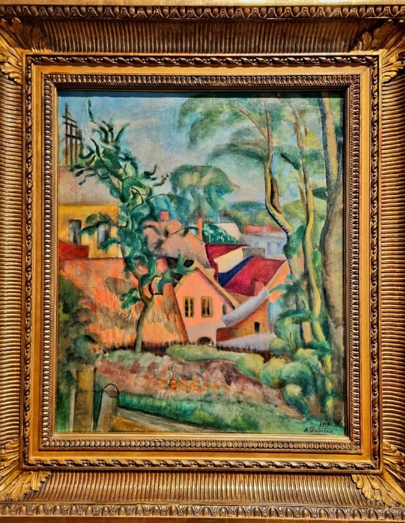 Ein Künstler mit dem Todestag am 23.12., JOSEPH MELLING (1724-1796), Hofmaler am Hof des Karlsruher Markgrafen, brachte einen hübschen kleinen Hund mit ins Spiel in seinem Portrait der „Markgräfin Luise mit ihren Söhnen“ (Detail) – gesehen in der Staatlichen Kunsthalle Karlsruhe im vergangenen Februar.Der Tag vor Weihnachten ist auch der 62. Todestag der größtenteils in Frankreich lebenden Deutsch-Russin ALEXANDRA POVÒRINA (1885-1963), deren „Landschaft mit rotem Haus“ von 1915 ich in der Hamburger Kunsthalle sah.