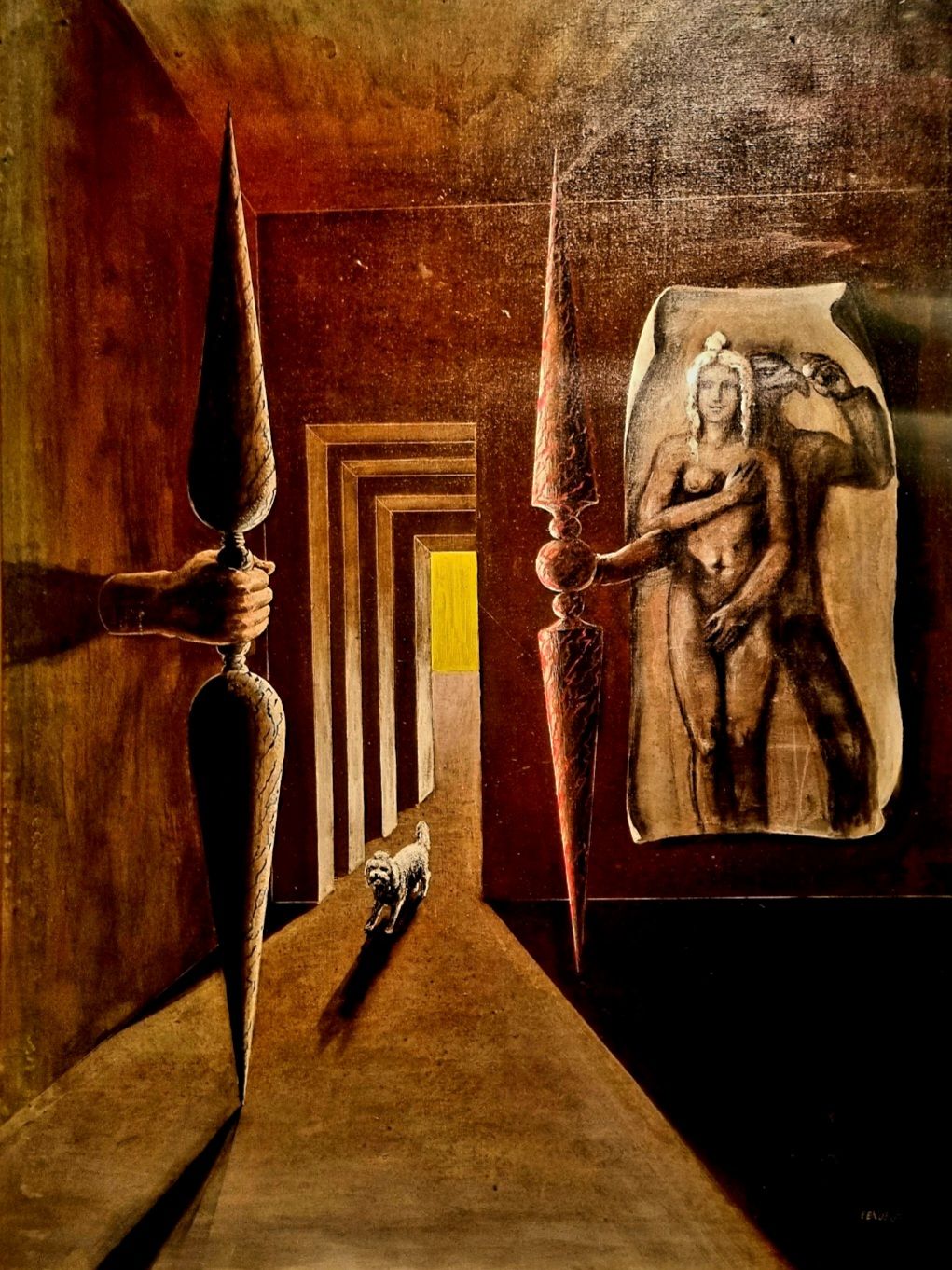 Ein kleiner Hund spielt eine verbindende oder tragische Rolle in EDGAR ENDEs Bild „Interieur – Bewaffnete Liebe“, das er 2 Jahre vor seinem Tod schuf. Der deutsche Surrealist, #artistoftheday EDGAR ENDE (1901-1965), Vater des Schriftstellers Michael Ende, starb heute vor 60 Jahren. Das Bild stellte das Museum Haus Opherdicke der Villa Hügel zur Verfügung für ihre Austellung „Die Ruhrkunstmuseen auf dem Hügel“ in diesem Sommer.