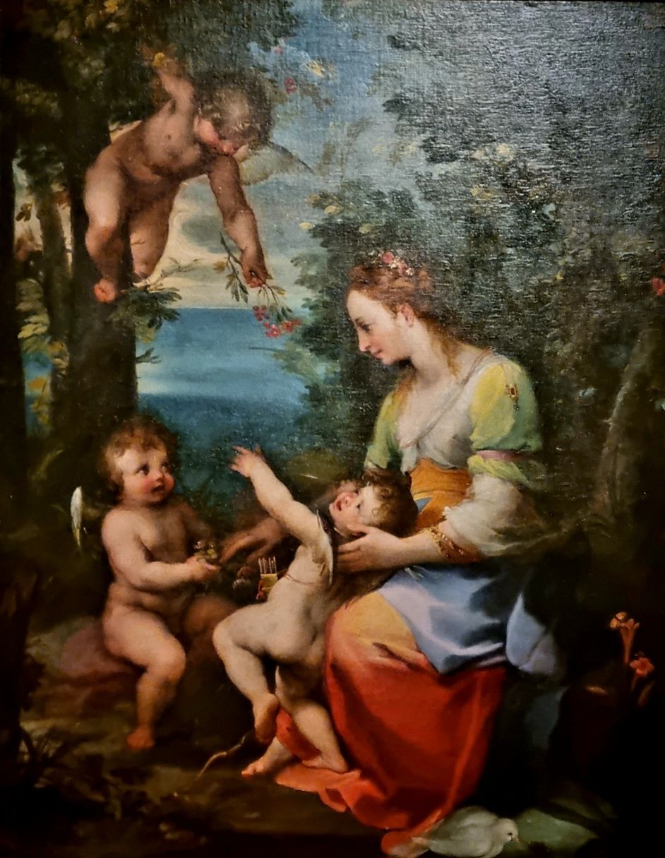 2 Geburtstagskinder aus 2 (bzw. 4) Jahrhunderten und 2 mediterranen Ländern: der italienische Maler und Kupferstecher VENTURA SALIMBENI (1568-1613) und der abstrakte Expressionist ESTEBAN VICENTE (1903-2001), der seine Heimat Spanien mit seiner amerikanischen 1. Ehefrau während des Spanischen Bürgerkriegs verließ und bis zum Lebensende in den USA lebte. SALIMBENIs bekleidete Venus-Interpretation sah ich im vergangenen September in den Musei Reali Torino und VICENTEs Bild „Calma“ im März 2025 im museum reinhard ernst in Wiesbaden – angelockt durch das schöne flächige türkisblau und den verblüffenden roten Punkt.
