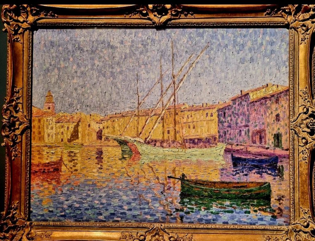 Heute hätte der in Paris geborene äußerst vielseitige, von mir sehr geschätzte Maler und Schriftsteller kubanisch -französischer Herkunft FRANCIS PICABIA (1879-1953) Geburtstag. Bei diesem Bild mit Bulldogge, dessen Titel ich nicht erinnere, gesehen 2018 in Paris, scheint er ein Vorläufer der PopArt zu sein, in anderen Bildern ist er eher Spätimpressionist – z. B. in der folgenden Ansicht von St. Tropez, die ich 2023 auf der Art Basel entdeckte.