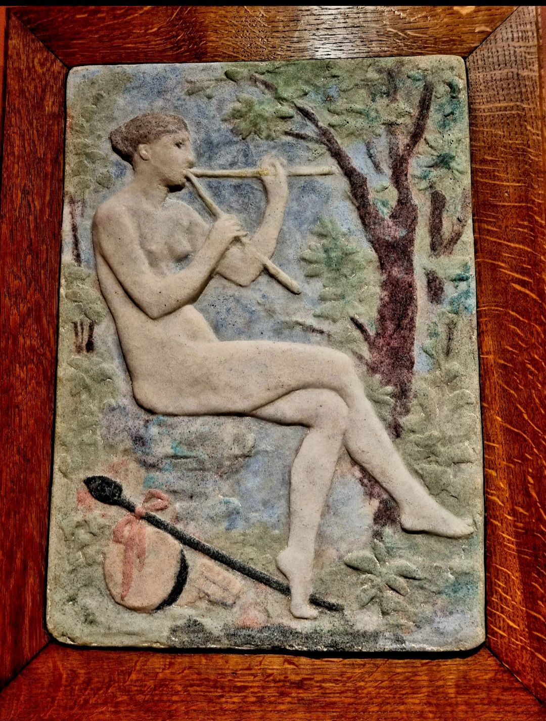 Am 31.1. 1907 ist der französische Glaskünstler und symbolistische Maler HENRY CROS (1840-1907) gestorben. Sein Glasrelief (pâte de verre) im Eichenrahmen mit der Blockflötenspielerin („Joueuse d’aulos“) ist zwischen 1895 und 1900 entstanden und erst vor kurzem vom Museum erworben worden.