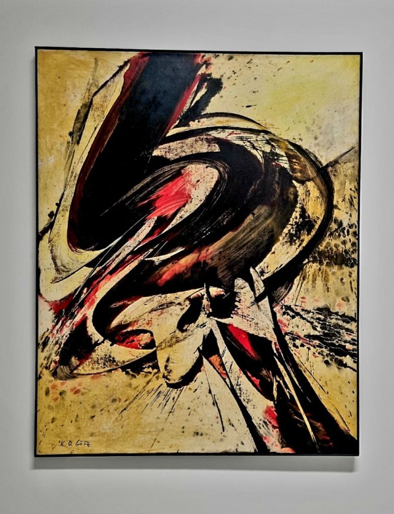 KARL OTTO GÖTZ (1914-2017), der große Informelle – in der Villa Hügel in Essen auch im letzten Juni mit einem sehr großen Bild des MUSEUM küppersmühle vertreten („Jonction II“ von 1991), dass er auch kleinere Bilder auf seine typische Art malte, zeigt „Balny“ von 1956 aus dem Sprengel Museum Hannover – und der Ehemann seiner berühmter gewordenen Frau OTTO MODERSOHN (1865-1943), der die Künstlerkolonie Worpswede mitbegründete. Das Bild „Der Birkenstamm“ von 1894 sah ich im Dezember 2025 im Bremer Paula Modersohn Becker-Museum in der Ausstellung „Short Stories“.