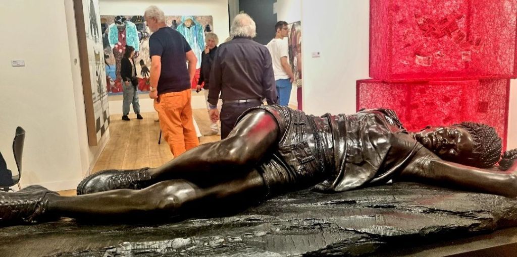 2 Künstler, deren von mir fotografierte Sujets sich zufälligerweise enorm ähneln: es sind heute die Geburtstage des deutschen Malers EBERHARD WÄCHTER (1762-1852) und des lebenden amerikanischen Malers und Bildhauers KEHINDE WILEY. WÄCHTERs Bild wurde in der Ausstellung über Bienen 2025 im Landesmuseum in Wiesbaden gezeigt. Sein Titel war „Der schlafende Pindar“ und um den Protagonisten herum sah man schwirrende Bienen. WILEYs „Ariadne“-Bronze entdeckte ich auf der Art Basel 2023.
