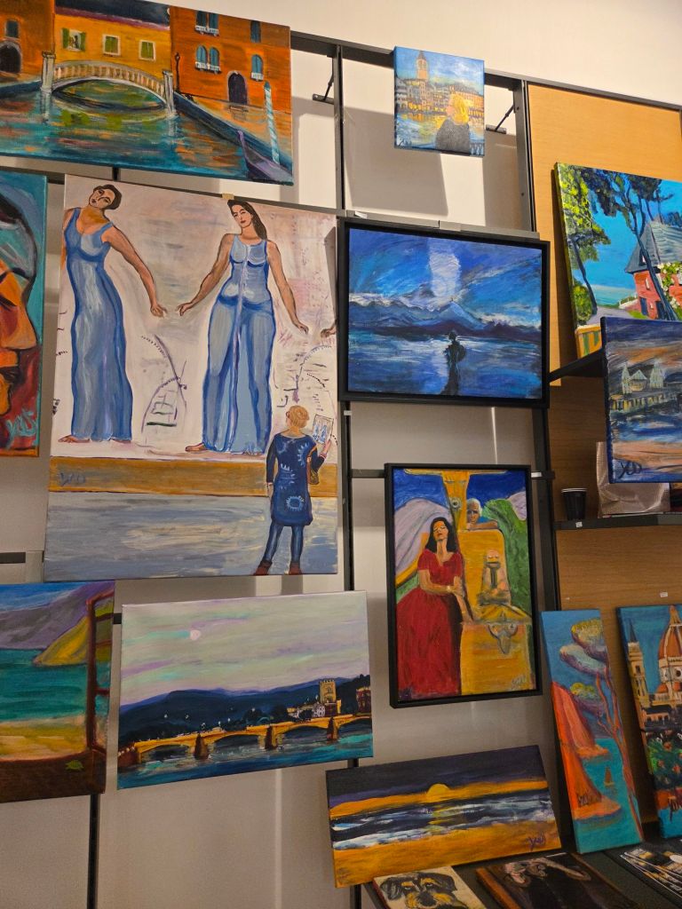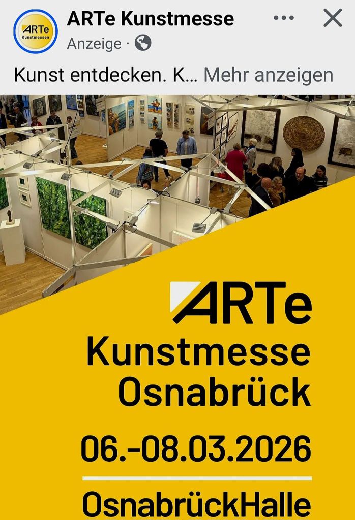 Meine Präsenz in der nächsten Woche (6.-8.3.26) auf der ARTe Kunstmesse in Osnabrück bringt es mit sich, dass ich 3 Bilder von der Wand in der Wintergalerie im Ex-Kaufhof genommen habe und auch aus dem Musée Yvonne, um meine „booth“ in Osnabrück zu füllen.