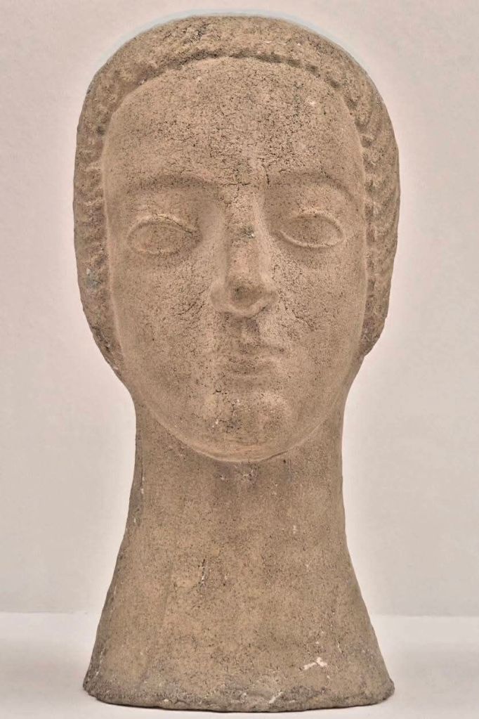 Drei Künstler mit heutigem Geburtstag sind der norddeutsche Landschaftsmaler und Vertreter der Pleinair-Malerei HINRICH WRAGE (1843-1912), dessen großes Bild „Waldweg in Malente“ ich im vergangenen Dezember im Ostholstein-Museum Eutin sah, und der russisch-jüdische Bildhauer MOSSEY KOGAN (1879-1943), dessen „Mädchenkopf“ aus Terrakotta von 1925, ausgestellt 2025 im Museum Ludwig Köln, wie aus antiken Zeiten wirkt. Zum 72. Geburtstag kann man heute dem indisch-britischen Bildhauer ANISH KAPOOR gratulieren, dessen „Konkave Spiegelkonstruktion“ von 2019 mich im Juni 2023 auf der Art Basel amüsierte.