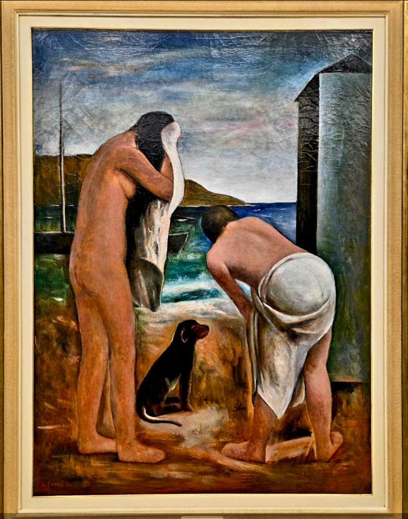 Den Künstler, dessen Bilder ich in den letzten Tagen in Mailänder Museen besonders häufig sah, möchte ich als ersten erwähnen: CARLO CARRÀ (1881-1966). Hier in Mailand hat er gelebt und ist vor genau 60 Jahren gestorben. Im Museo Del Novecento Milano sah ich seine wunderbaren Bilder „Estate“ und „Galleria“ und im Palazzo Citterio gestern ein kleines Selbstportrait von ihm.Die „Galleria“, die sich bestimmt auf die Galleria Vittorio Emanuele II in Mailand bezieht Heute kann man noch einen Geburtstag verzeichnen- LOUIS ERNEST BARRIAS (1841-1903) – und einen weiteren Todestag : vor 70 Jahren starb EMIL NOLDE (1867-1956). Das bildhauerische Werk von BARRIAS sah ich 2025 im Musée d’Orsay in Paris: „La Nature se dévoilant à la Science“. NOLDEs „Herbstmeer“ hing 2025 im Sprengel Museum Hannover.