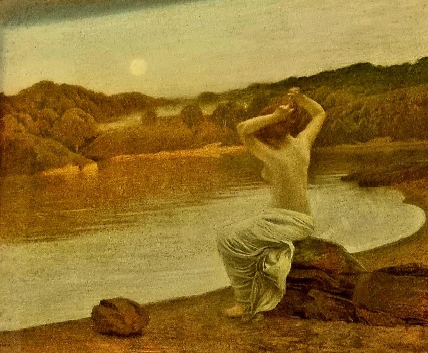 Heute hätte der französische Jugendstilmaler mit den 4 Vornamen MARIE AUGUSTE ÉMILE RENÉ MÉNARD (1862-1930) Geburtstag. 2025 sah ich romantische Werke von ihm an 2 Orten: das Ölbild „Rêve antique“ im Musée d’Orsay Paris und das Pastellbild „Nymphe au crépuscule“ in der großen Jugendstilausstellung im Museum Wiesbaden